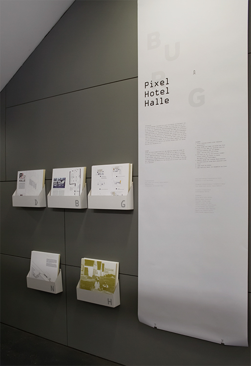 Im Anschluss an das Innenarchitektur-Semesterprojekt „Pixelhotel“ an der Burg Giebichenstein wurden die studentischen Arbeiten im Foyer der Stiftung Moritzburg – Kunstmuseum Halle ausgestellt. Die Herausforderung bestand darin, den experimentellen Charakter der Projekte sichtbar zu machen und zugleich einen angemessenen Dialog mit dem repräsentativen Museumsraum zu entwickeln. Ziel war eine Präsentationsform, die unabhängig von der bestehenden Architektur funktioniert, flexibel einsetzbar ist und mit einfachen Mitteln realisiert werden kann. …